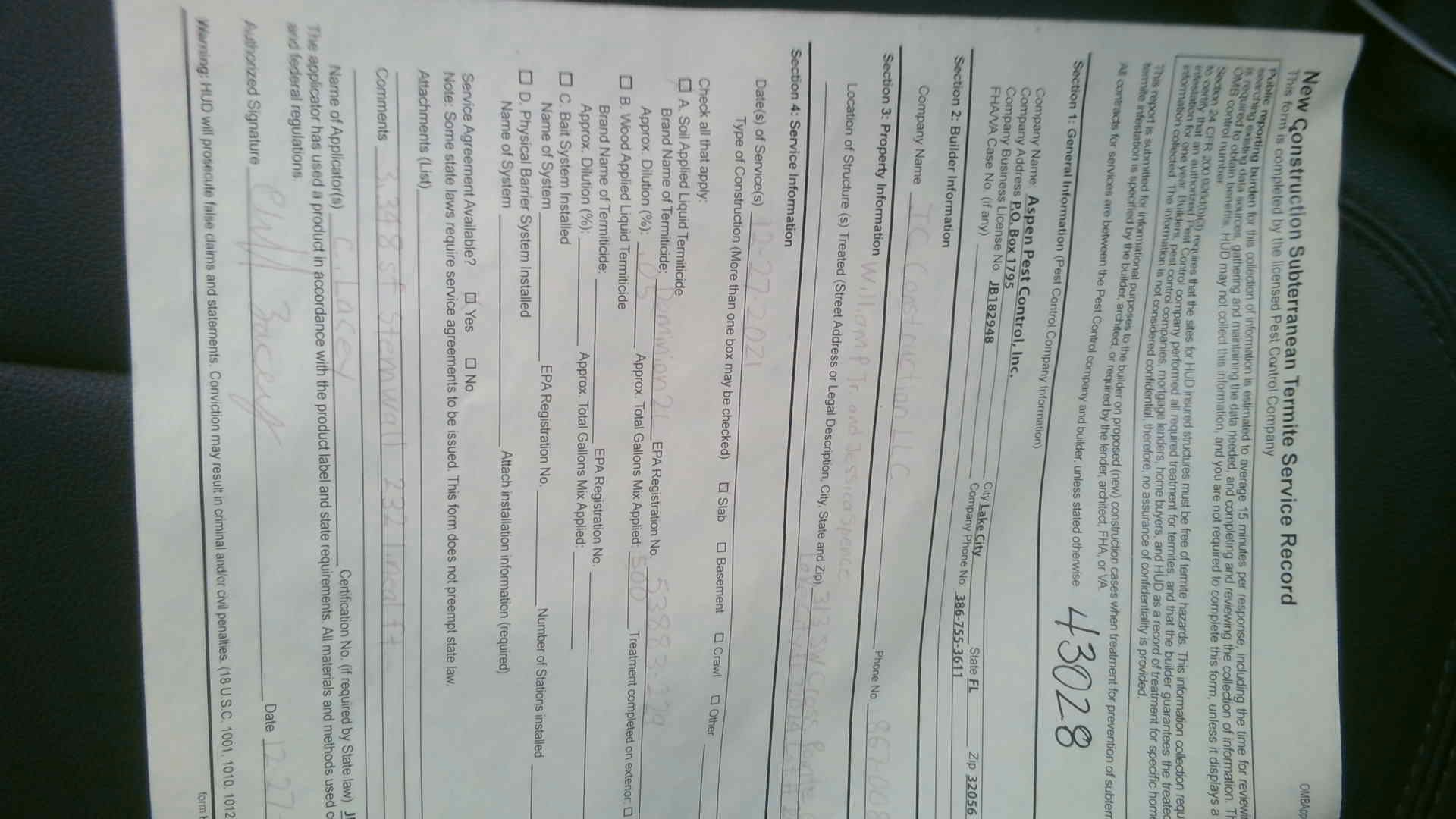 *IN CONTRACTOR SECTION, PLEASE CHANGE DENNIS CONKLIN TO EVERTON RUDDOCK, AS DENNIS DOES NOT HOLD A LICENSE-- ALSO PLEASE INCLUDE WHOLE LICENSE NUMBER (I.E.-CFC1427145)