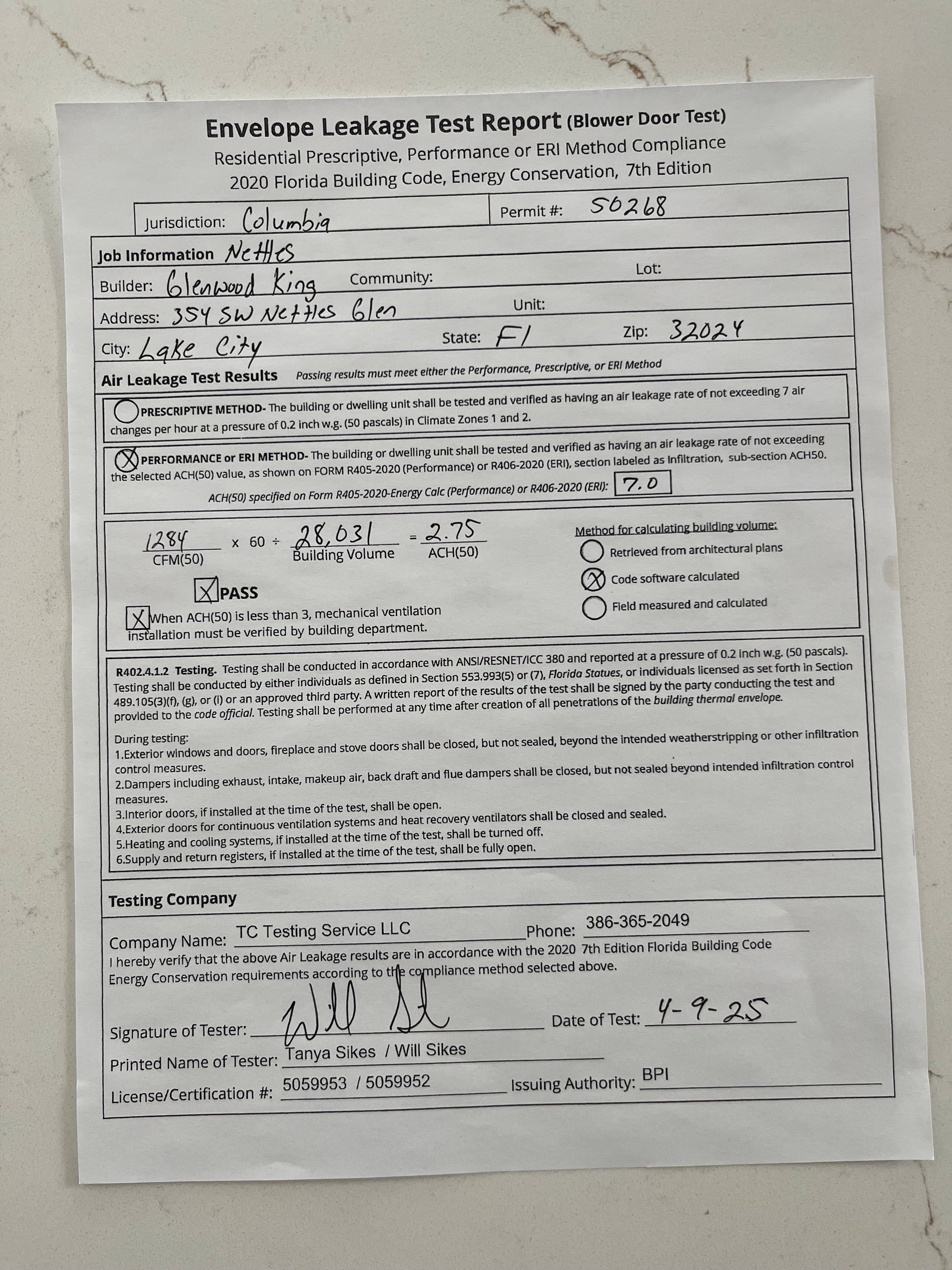 * PLANS ARE DIGITALLY SEALED, PLEASE SEND THEM VIA EMAIL TO BLDGINFO@COLUMBIACOUNTYFLA.COM AND INCLUDE APP NUMBER 65512