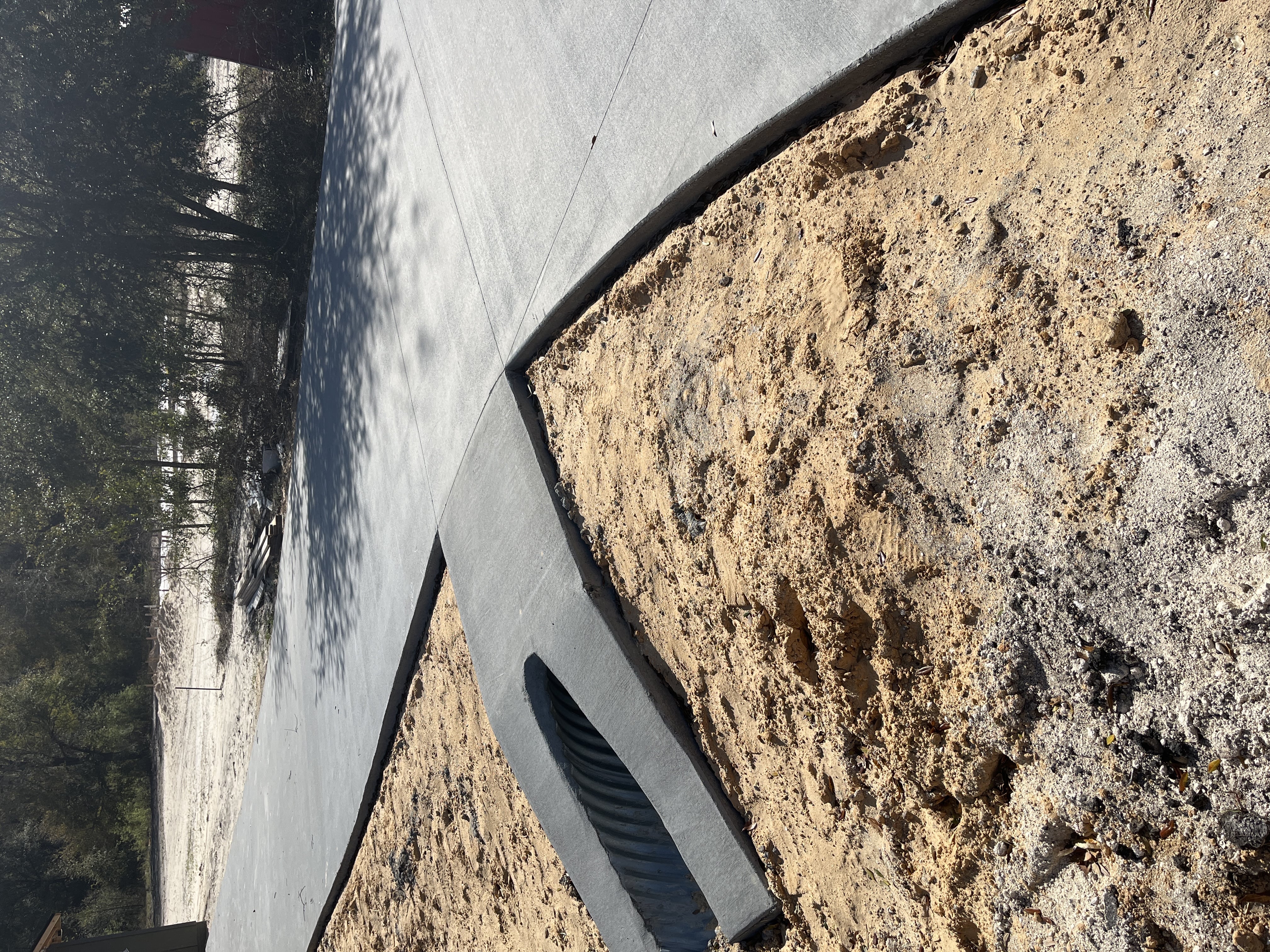 Requirements An 18” storm pipe of approved material is required with a minimum length of 32 feet. 4” Concrete Pads shall be located on each mitered end section, and shall be 5’ wide by 7’ long