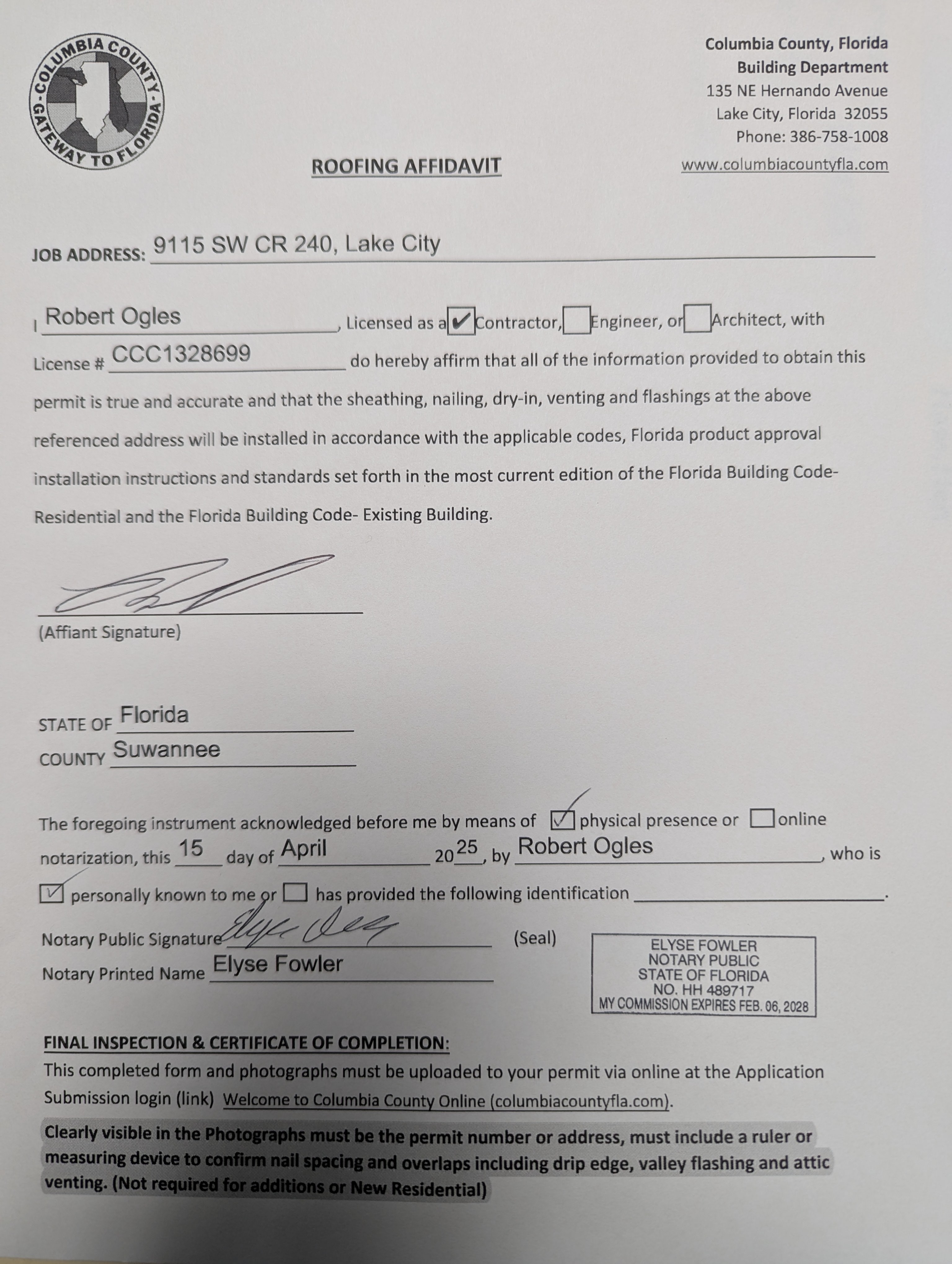 Columbia County, FL | Permit Details