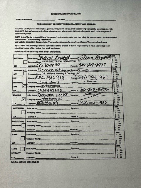 * SEPTIC APPROVAL PAPERWORK OR CITY OF LAKE CITY ACCESSIBILITY LETTER
