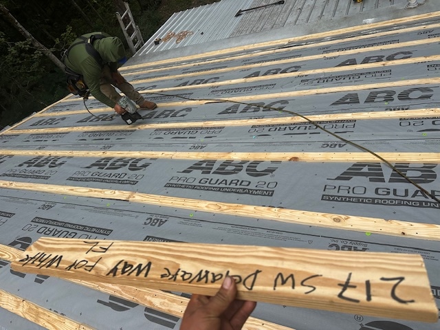 Explain if not removing the existing roofing material? supply and install 1"x4" wood purlins with metal