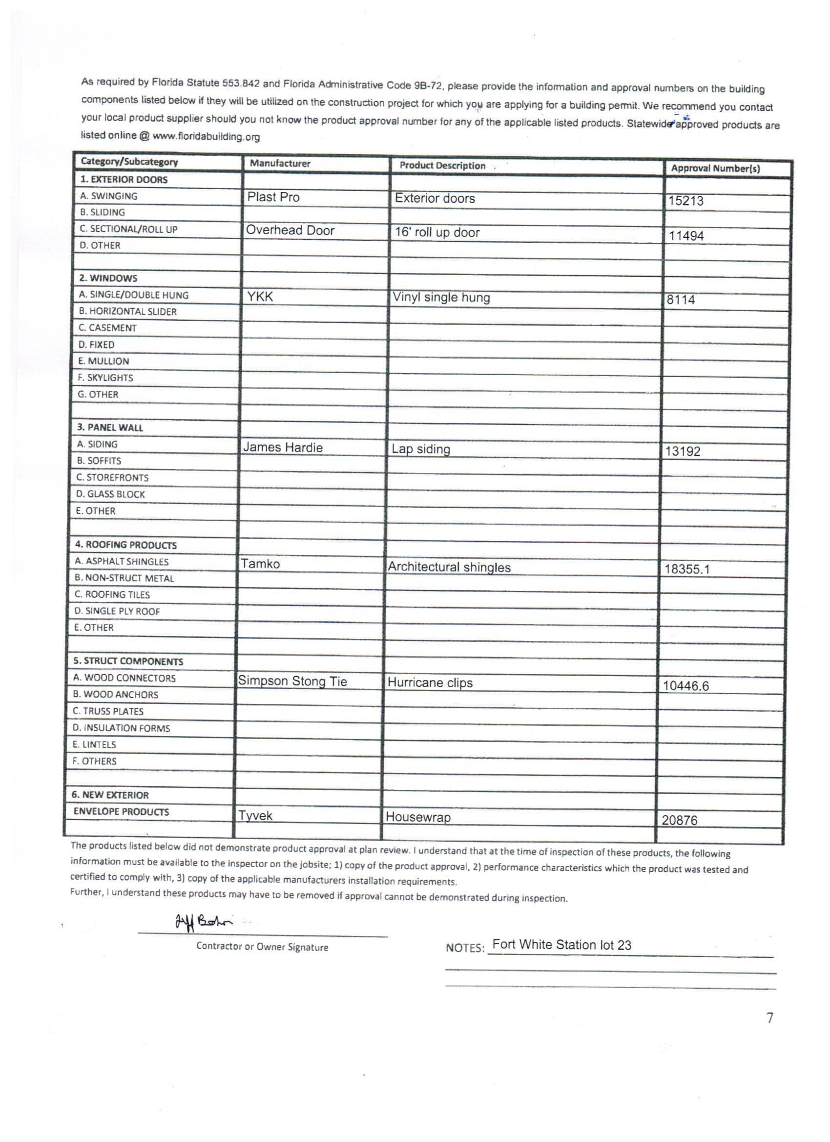 * product approval codes for all exterior products