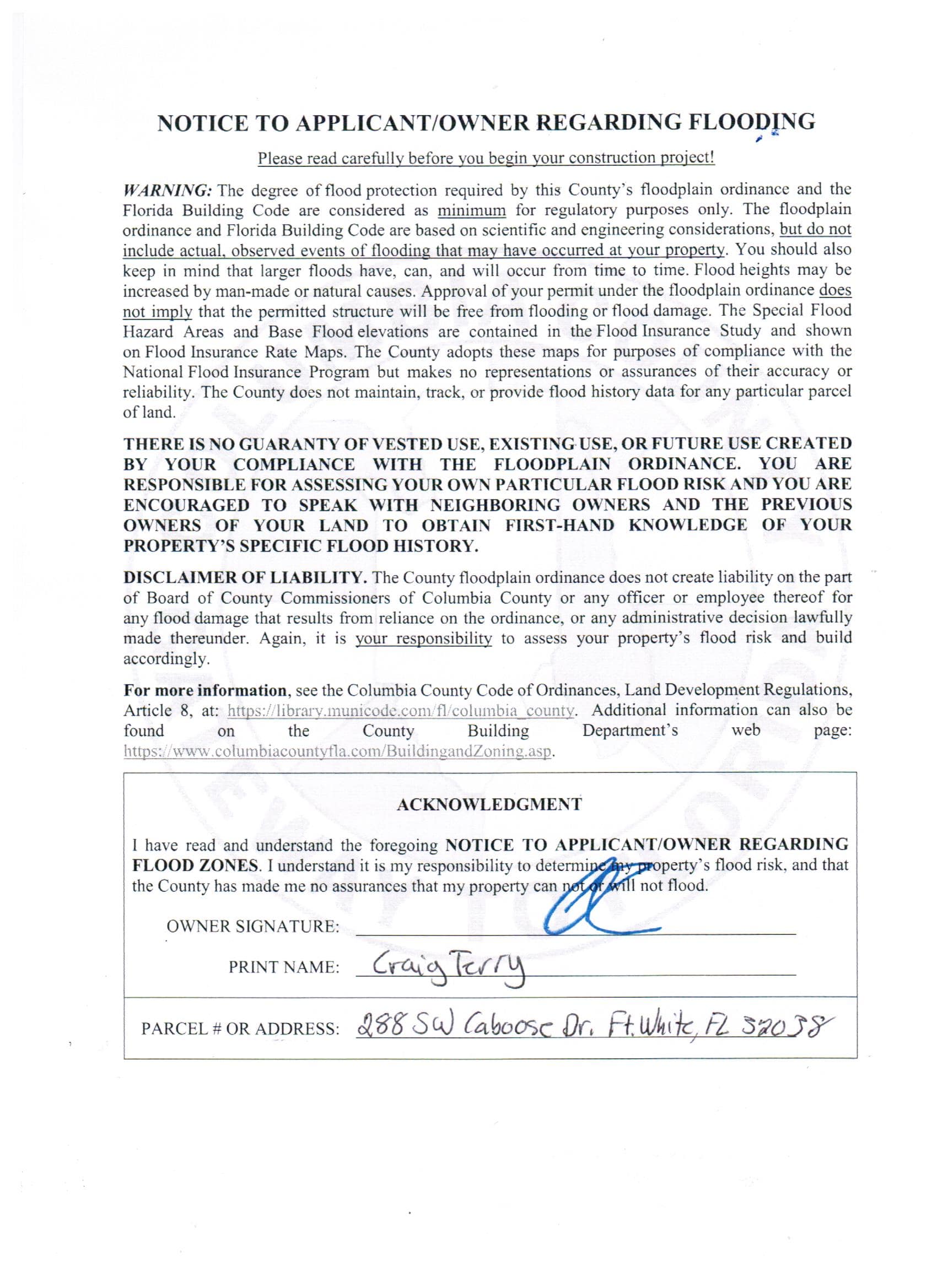 * floodplain notice to owner