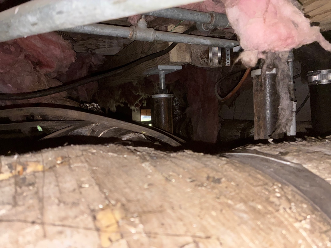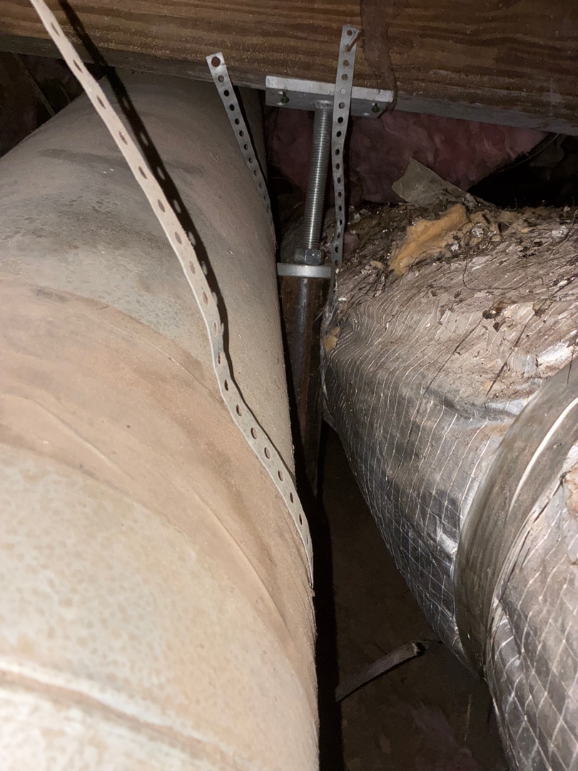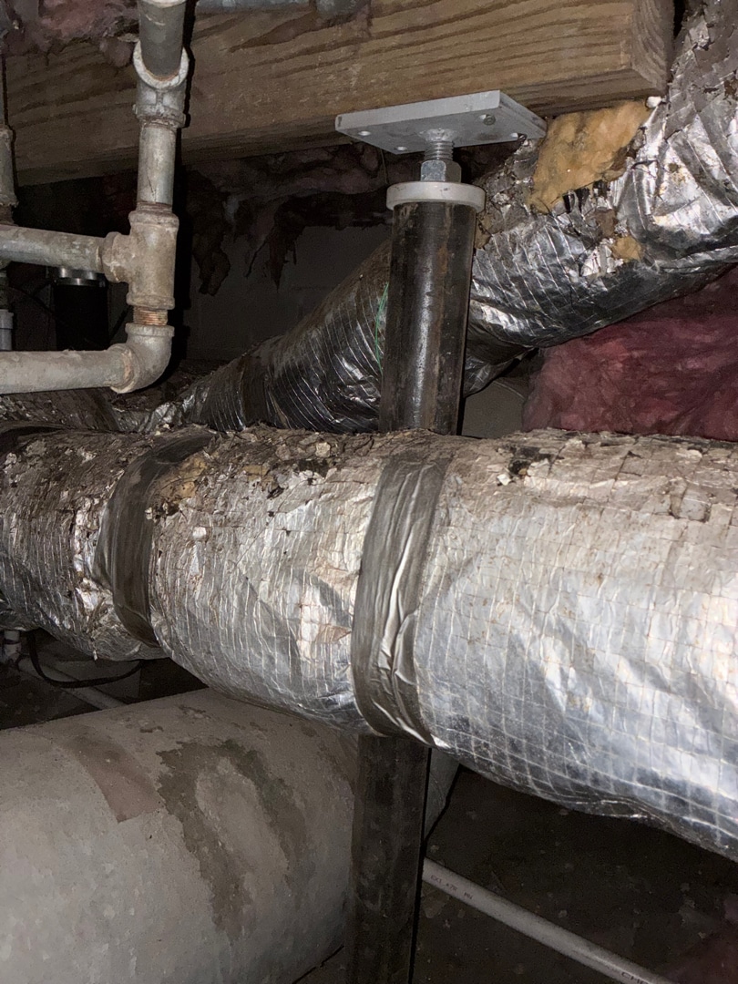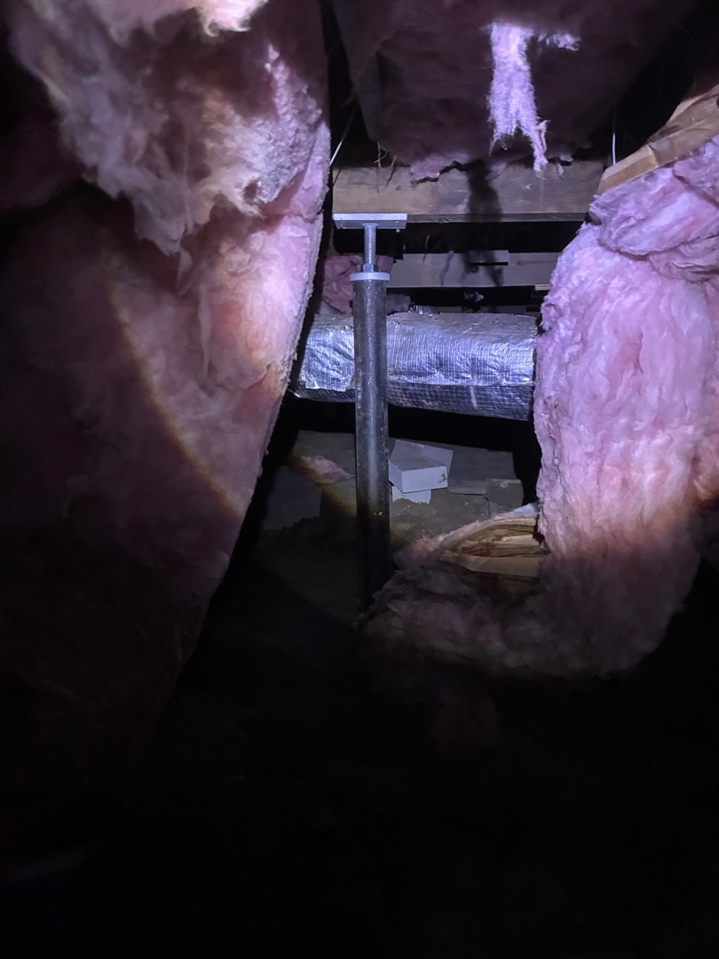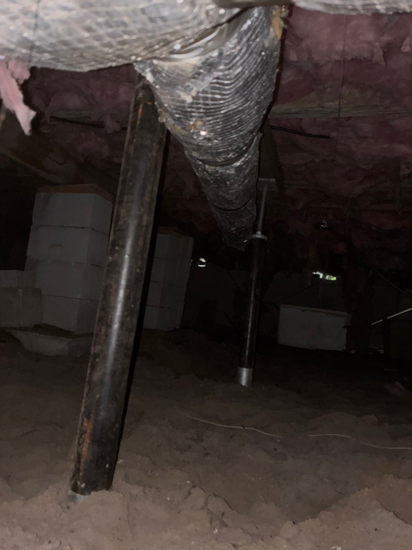 Description of the work being performed: Foundation Repair - installation of (12) adjustable crawl space jacks, (24) feet of 4"x6" pressure-treated wood supplemental beam and existing pier adjustment