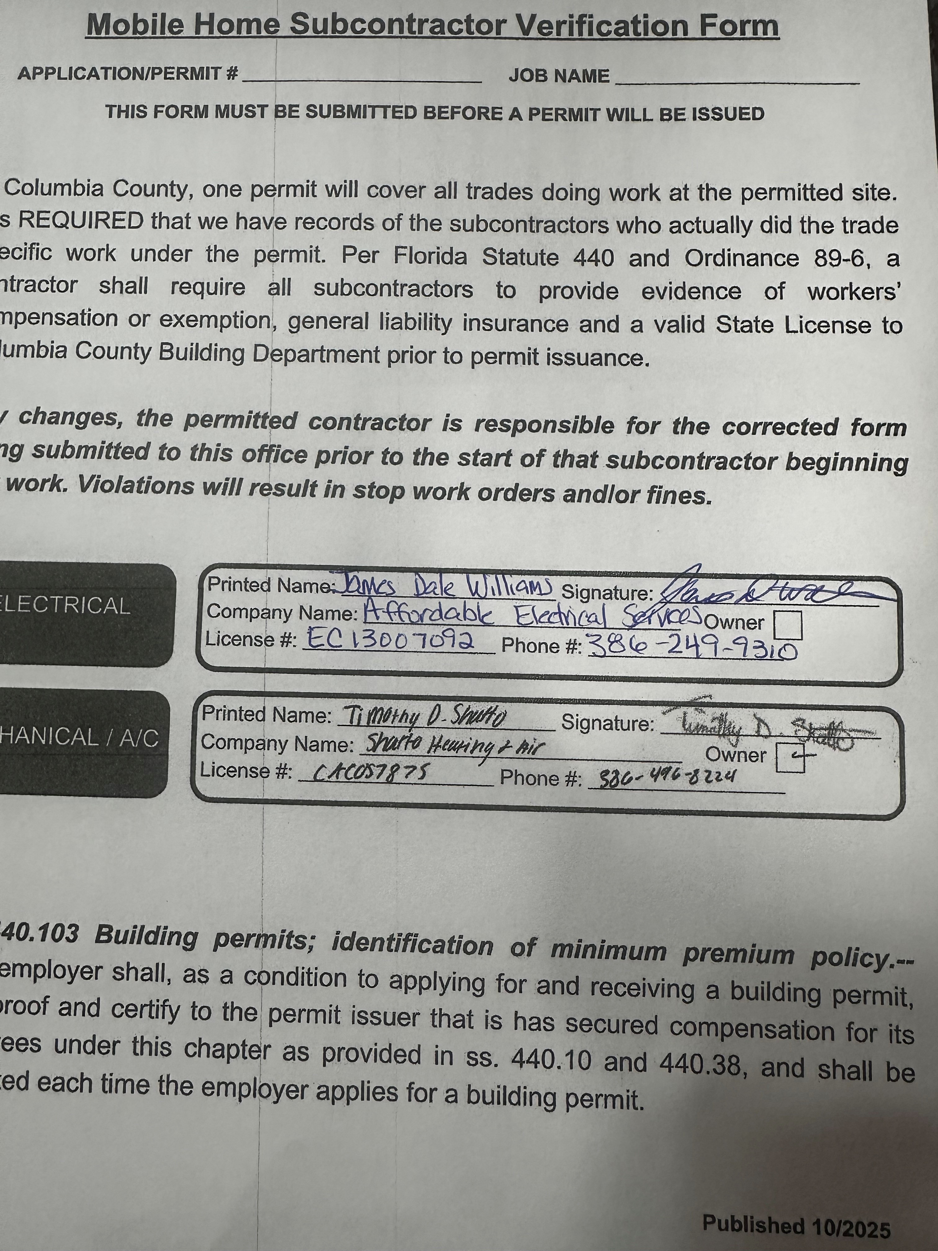 Columbia County, FL | Permit Details