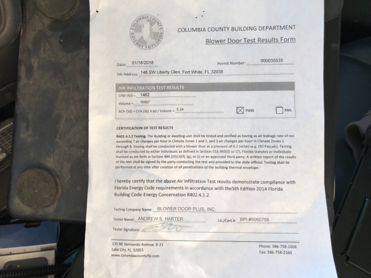 NOC ON FILE, FLOOR ONE FOOT ABOVE THE ROAD BLOWER DOOR TEST REQUIRED