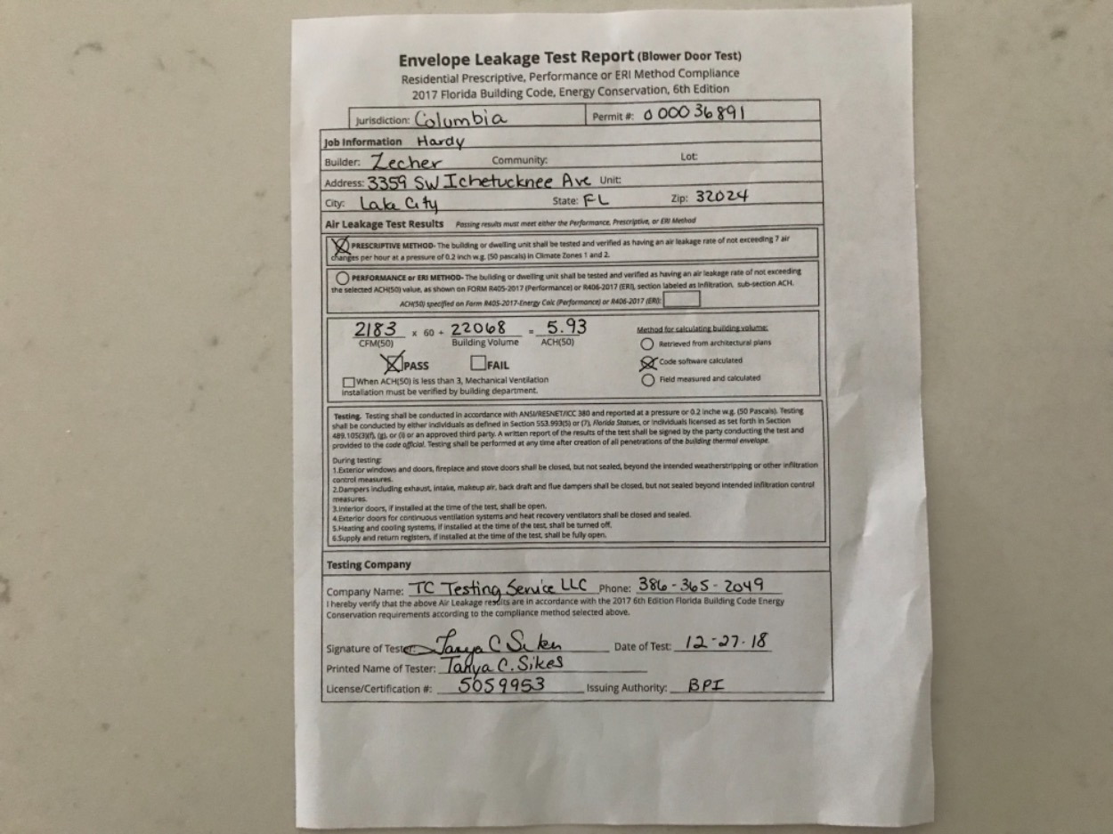 FLOOR ONE FOOT ABOVE THE ROAD, NOC ON FILE Blower door test recieved 5,93