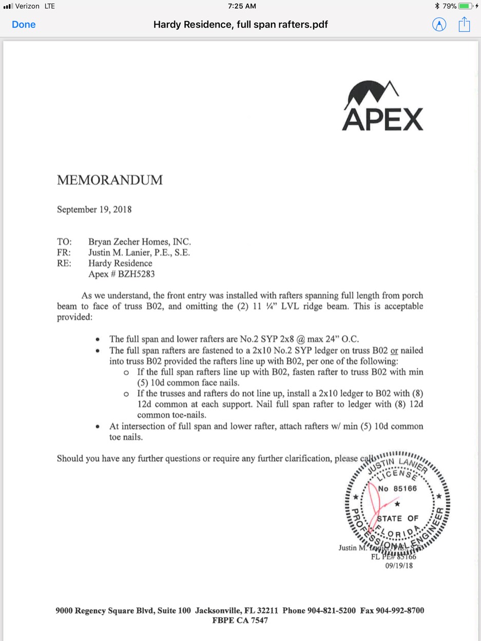 Failed: Building - Framing Missing Is Ridge Beam On Front Porch. Tommy Matthews 9/13/2018