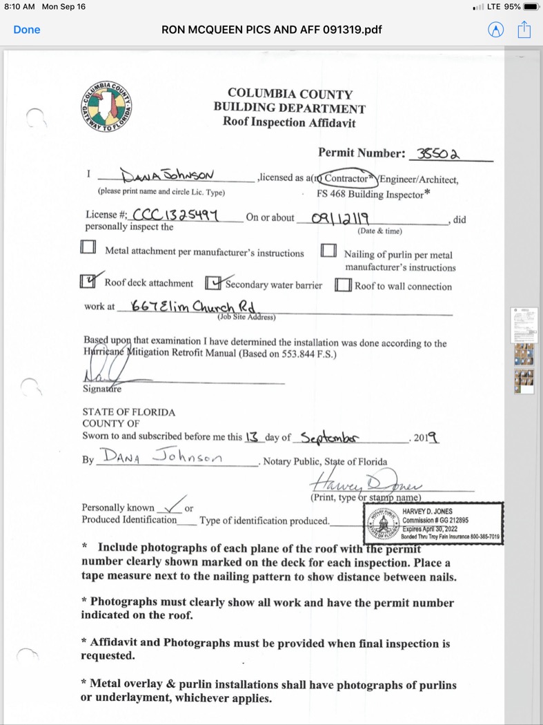 NOC ON FILE. Pictures and affidavit recieved
